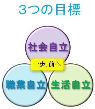 個人として職業人として家庭人として社会的な責任を自覚し汗と好奇心と工夫を持って生活を確立し、利用者が物心両面で社会人として自立することを目指します。
